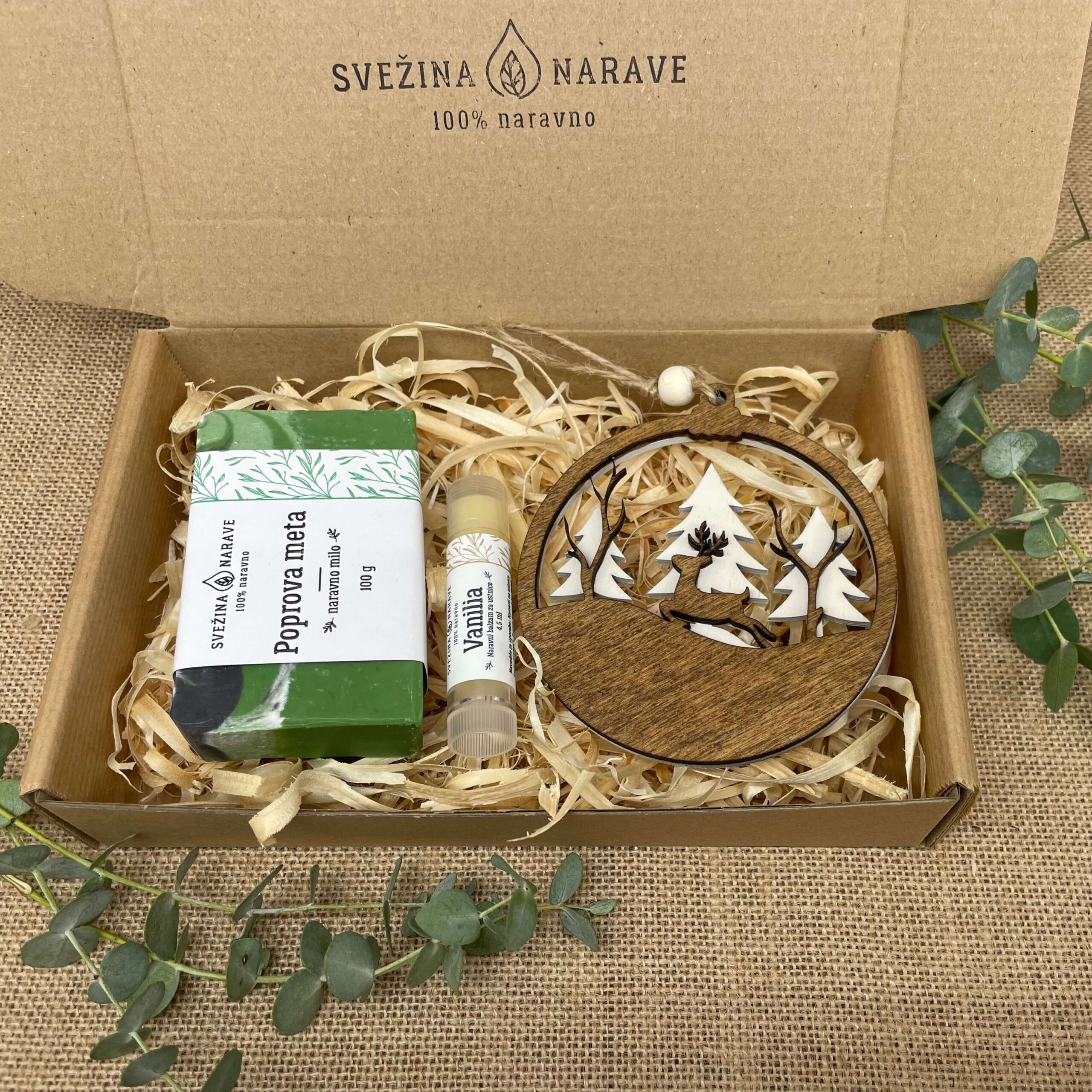 Izdelki so pakirani v okolju prijazni embalaži – v kartonasti škatli, ki je na dnu polnjena z leseno volno. Vse skupaj pa je lično zavito in dekorirano z mašnjico.